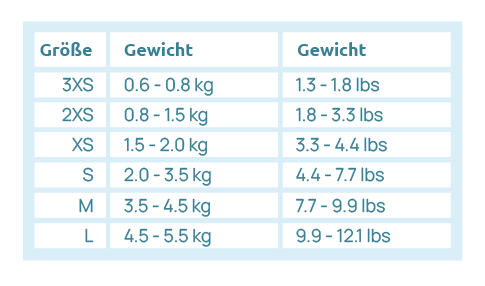 Sie sind sich nicht sicher, welche Größe Sie wählen sollen? Zögern Sie nicht, uns zu kontaktieren — wir helfen Ihnen gerne dabei, die beste Passform für Ihr Haustier zu ermitteln.