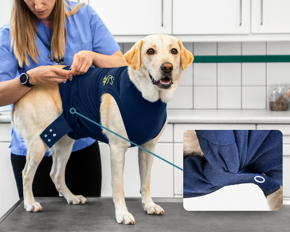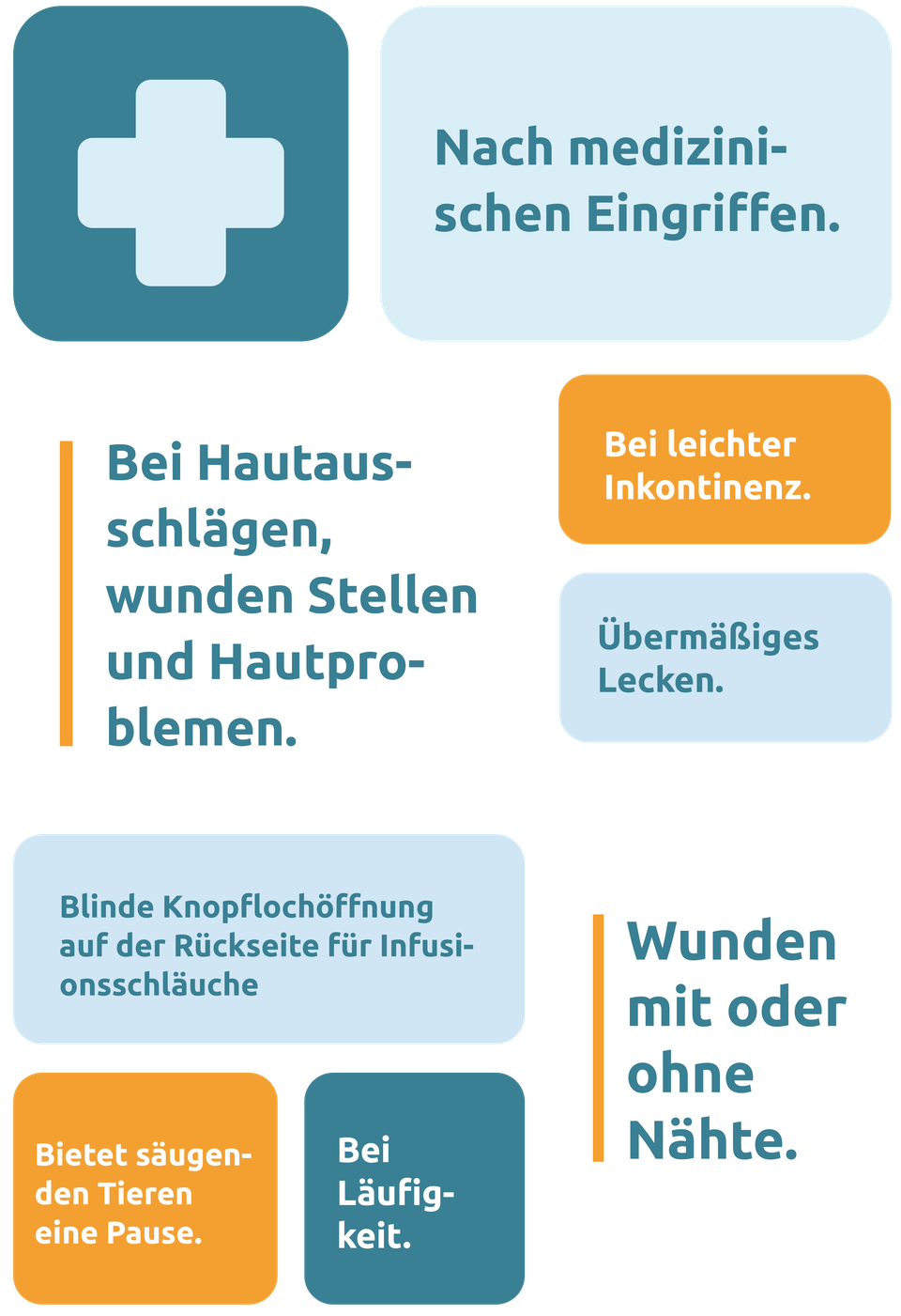 Ich kann Pet Shirts wärmstens empfehlen, nicht nur um zu verhindern, dass die Patienten an ihren Wunden lecken, sondern auch, um zu vermeiden, dass sie sich durch Kratzen mit den Hinterbeinen verletzen. Eine Hundepatientin hatte kürzlich eine Bauchoperation und obwohl sie die Wunde nicht mit dem Maul erreichen konnte, versuchte sie, sich mit den Hinterfüßen zu kratzen. Wir haben ihr schnell ein Shirt angezogen und es hat wunderbar funktioniert. Außerdem sah sie damit sehr modisch aus. Win-win!