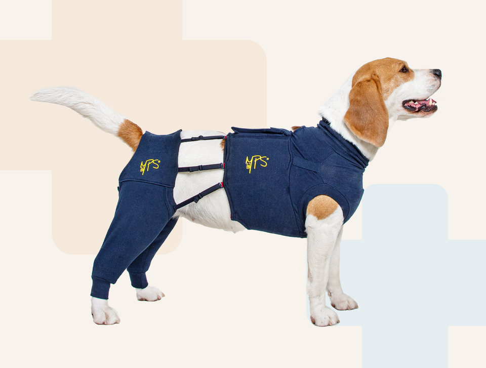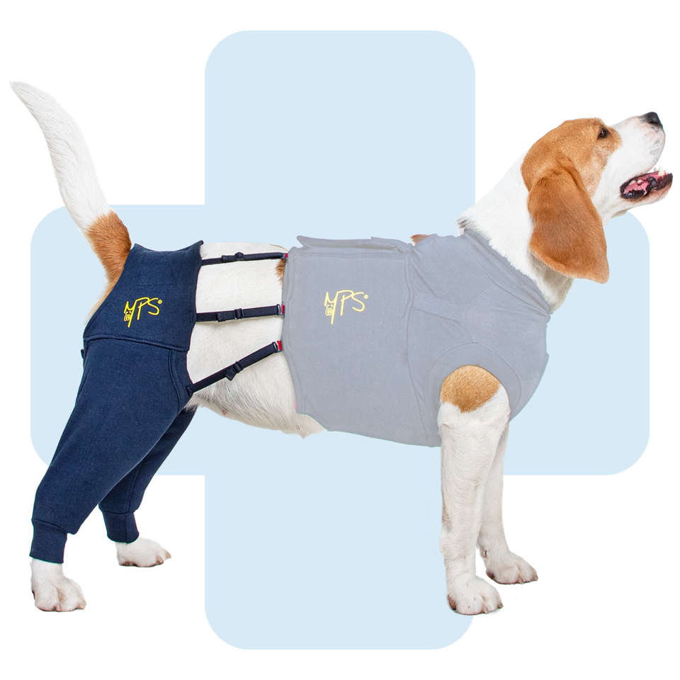 L’emballage des MPS-HLS contient un manchon gauche et un manchon droit distincts, qui peuvent être attachés ensemble avec un Velcro® ajustable. Les deux Hind Leg Sleeves doivent être utilisés pour les maintenir en place.