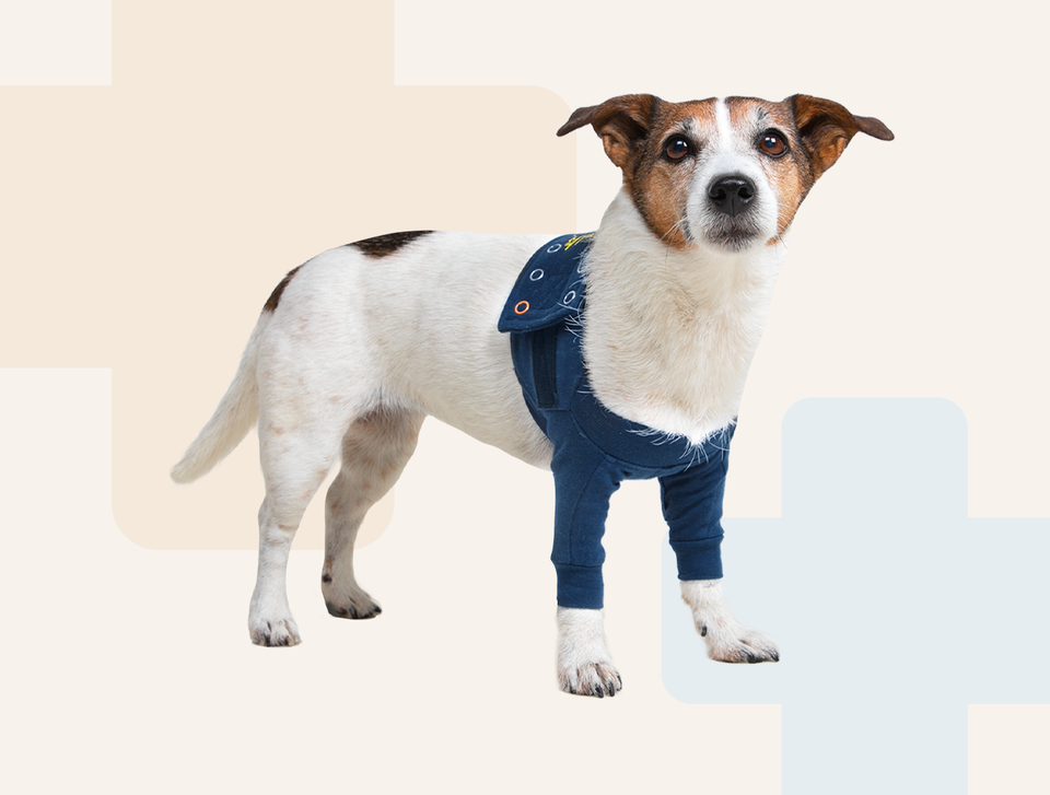 Le Top Shirt s’adapte confortablement autour du poitrail et des épaules, et est facile à ajuster grâce à la large fermeture Velcro®. Il y a une bande élastique ajoutée sous le ventre pour assurer un ajustement bien ajusté et confortable tout en permettant à votre chien de respirer. La bande élastique en bas exerce également une pression douce autour de l’abdomen, ce qui peut aider à réduire le stress ou l’anxiété chez le chien.